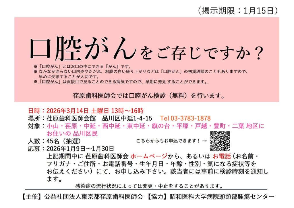 対 象 : 小山・荏原・中延・西中延・東中延・旗の台・平塚・戸越・豊町・二葉 地区にお住いの品川区民